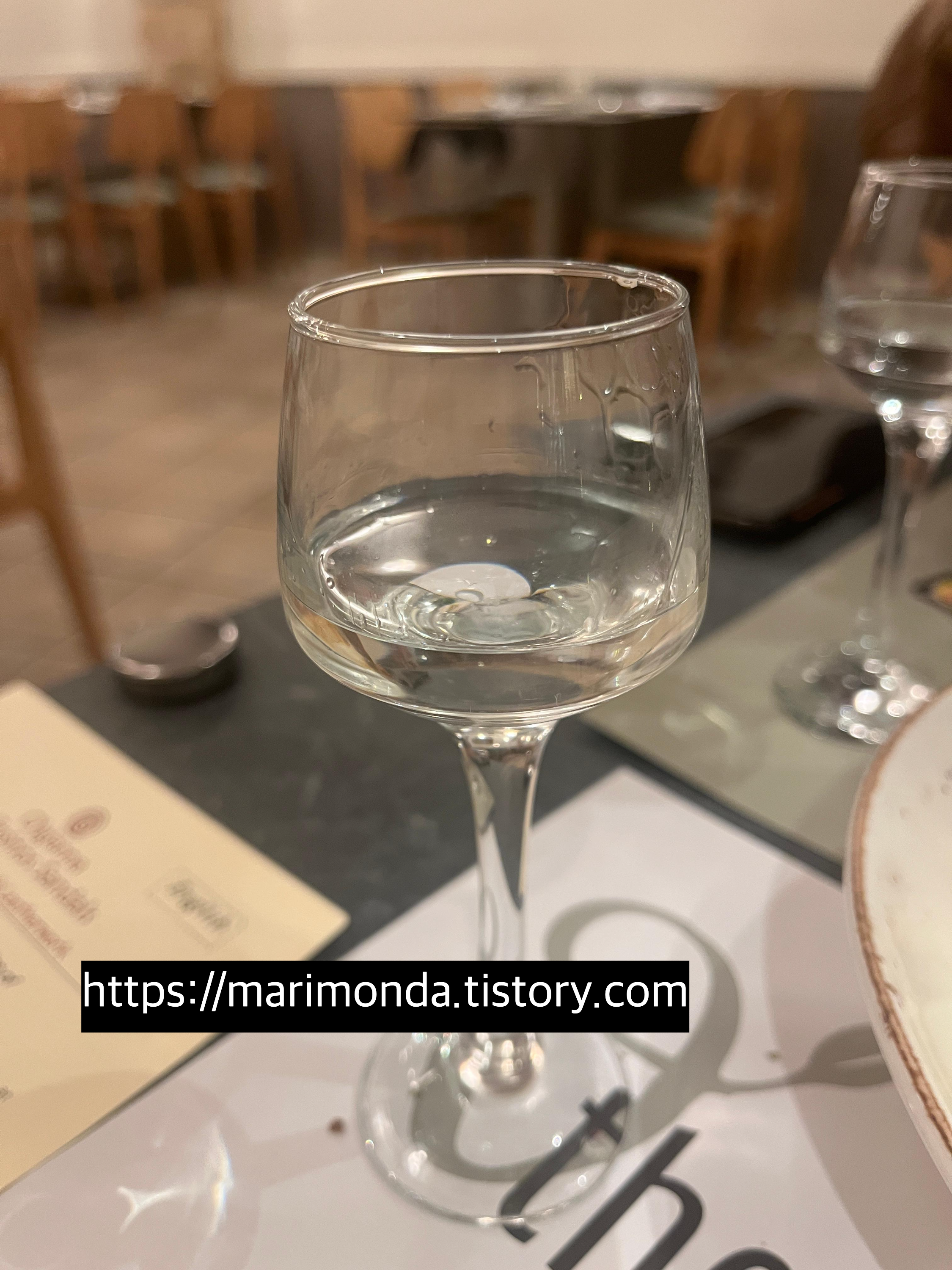 전반적으로 음식도 만족스러웠고, 식사 시간을 피해가서 그런지 직원 분들도 여유있게 응대해줬습니다. 저희 테이블을 지날 때마다 음식이 어떤지 확인하시고 음식에 대해 설명도 해주셨고요. 음식을 다 먹을 때 쯤에는 다시 오셔서 술을 마시는지, 저희에게 '마스티하'라는 그리스 식후술을 마셔봤냐고 물어보더라고요. 그래서 안 마셔봤다고 하니 깜짝 놀라며 조금 마셔볼거냐고 물었어요. 그러더니 맛보기 술을 두 잔 가져다 주셨습니다. 약간 소나무 향이 나는 듯한 달콤한 술이었어요.